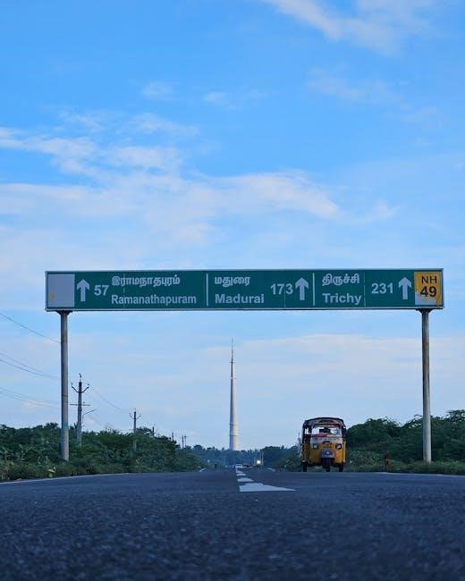 Highway and expressway guide signs are governed by strict regulatory standards to ensure uniformity and safety. The Manual on Uniform Traffic Control Devices (MUTCD) serves as the primary national standard, detailing specifications for design and placement. Further guidance is found in the FHWA’s Standard Highway Signs publication, referenced within the MUTCD and Engineering Policy Guides (EPG 911).