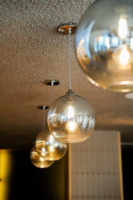 Installation requires careful consideration of ceiling height and desired hanging length․ A secure mounting bracket is crucial, as pendants rely entirely on this support․ Wiring connections are similar to other fixture types, but the weight of the pendant necessitates a properly rated junction box․